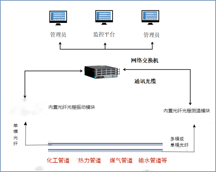 管道產生堵塞、氣泡等異常(會發生爆管、水錘等災害),通常會伴隨振動、聲音、溫度等變化,分布式光纖對其參數變化而預警
